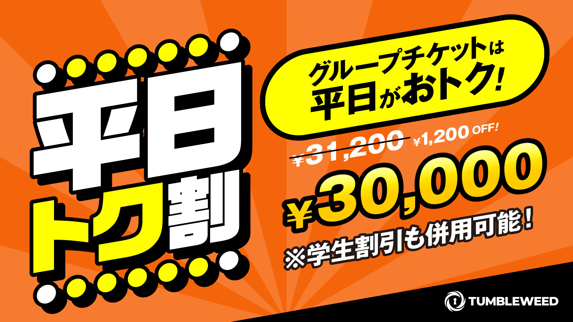 - チケットを3枚以下でご購入の場合は、他のお客様と同じチームとなる場合がございます。また可能な限りお連れ様と同じチームでご案内させていただきますが、席数の関係で別のチームに分かれていただく可能性がございます。