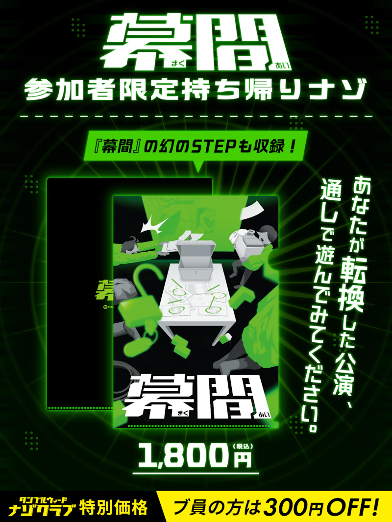 - 入場締切時刻は開演2分前です。謎解き公演という性質上、入場締切時刻に間に合いませんとチケットをお持ちでも入場いただけなくなりますのでご了承ください。
